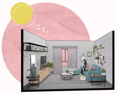 E não podemos deixar de dar foco na decoração de piso, parede e sofá: é essencial criar uma harmonia entre os itens, pois assim transmitimos a ideia de que tudo foi pensado de forma estratégica e especial. Como a tonalidade da cortina e ilustrações dos quadros.