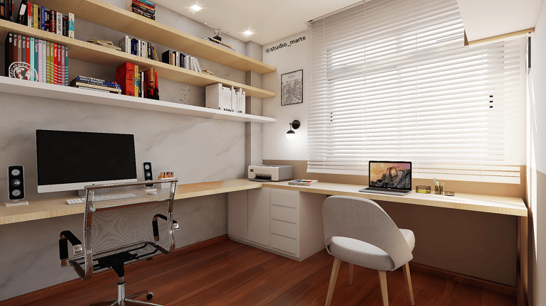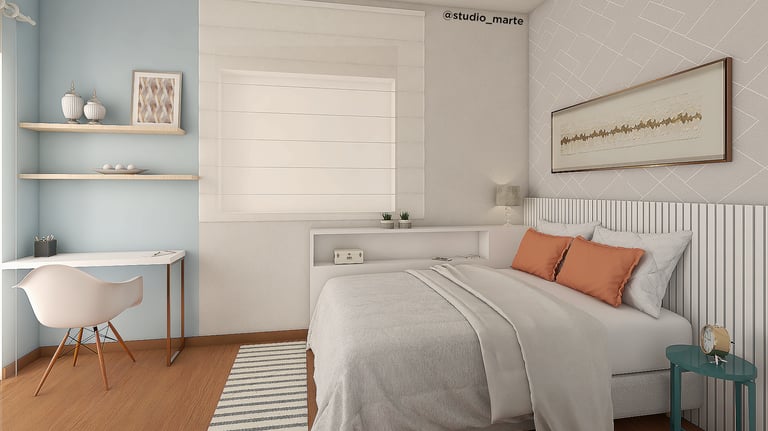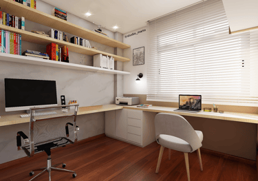 Transformação de cômodo para abrigar espaço de trabalho, closet e estudo. Planejamento para uma execução rápida, prática e pontual.