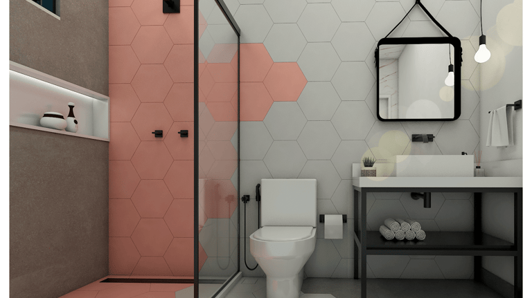 Banheiro Rosê - Projeto de Interiores e Decoração